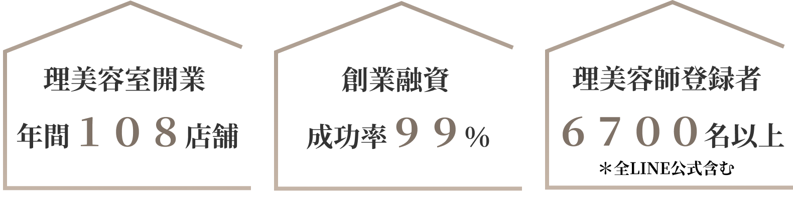 弊社では年間108店舗、開業の融資調達、年間累計10億円の融資サポート実績、融資調達成功率99%の実績があります。